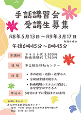 耳や言葉に不自由のある方々の日常生活における不便を少しでも軽減することを目指し、手話のできる人を養成するとともに、聴覚障がい者に対する理解と関心を深めることを目的として、毎年開催しています。