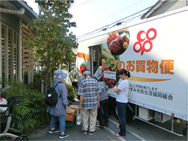 住民参加型の買い物支援「移動販売車(コープのお買物便)」巡回中!
